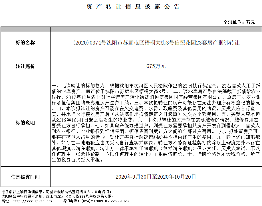 沈陽(yáng)市蘇家屯區(qū)梧桐大街3號(hào)信盟花園23套房產(chǎn)捆綁轉(zhuǎn)讓