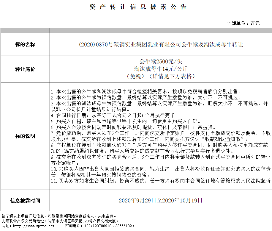 鞍鋼實業(yè)集團(tuán)乳業(yè)有限公司淘汰成母牛