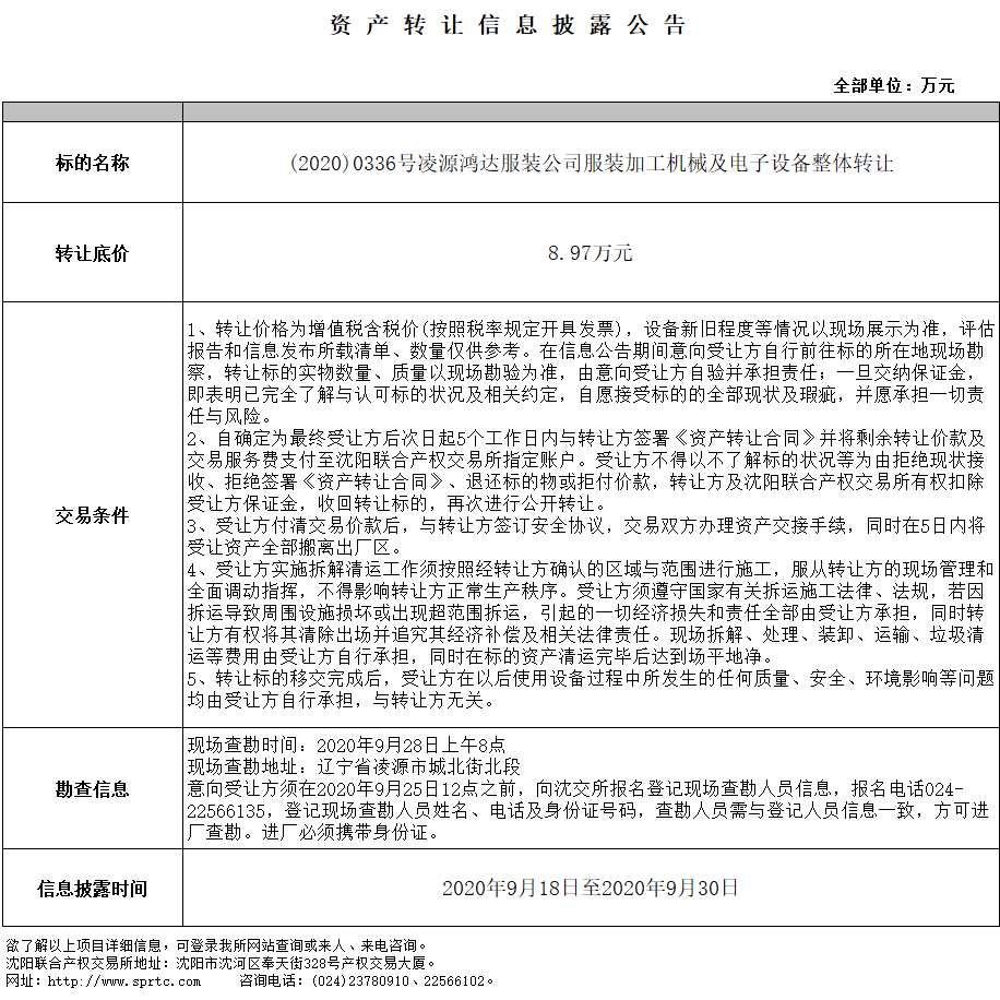 凌源鴻達服裝公司服裝加工機械及電子設(shè)備整體轉(zhuǎn)讓