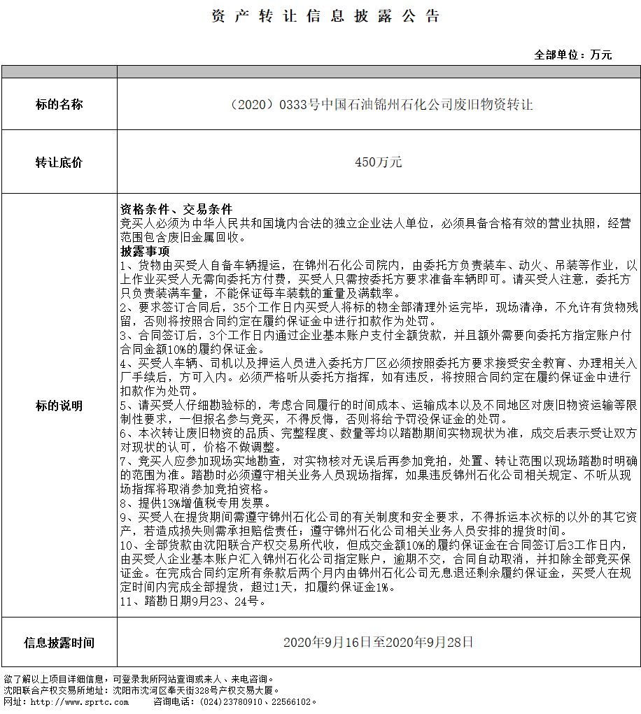 中國石油錦州石化公司院內(nèi)焦化南側(cè)、原聚丙烯辦公樓東側(cè)廢鐵場廢舊物資(不包含廢舊變壓器)