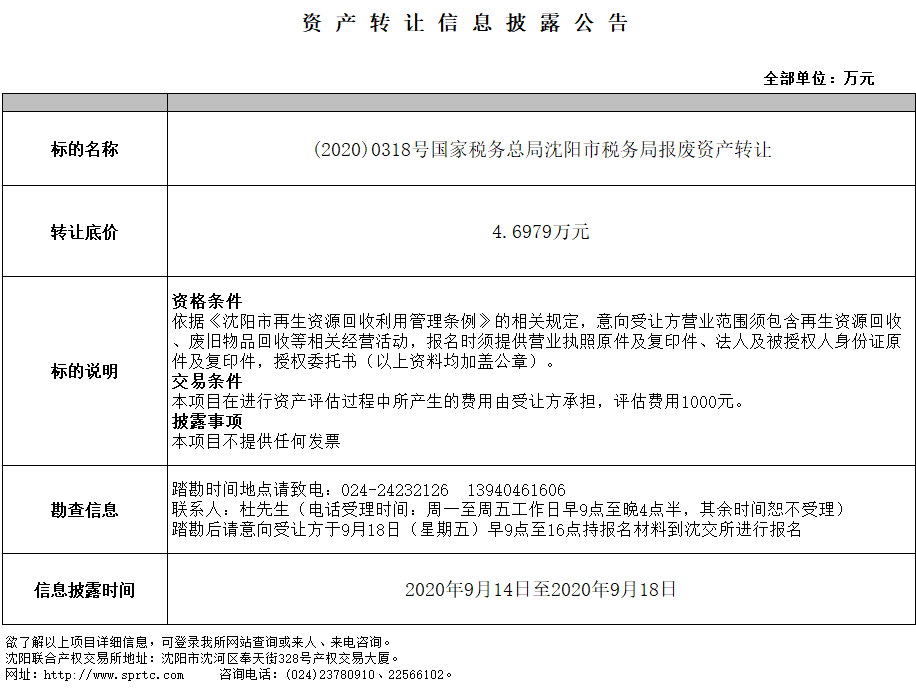 國(guó)家稅務(wù)總局沈陽(yáng)市稅務(wù)局行政事業(yè)單位報(bào)廢資產(chǎn)轉(zhuǎn)讓