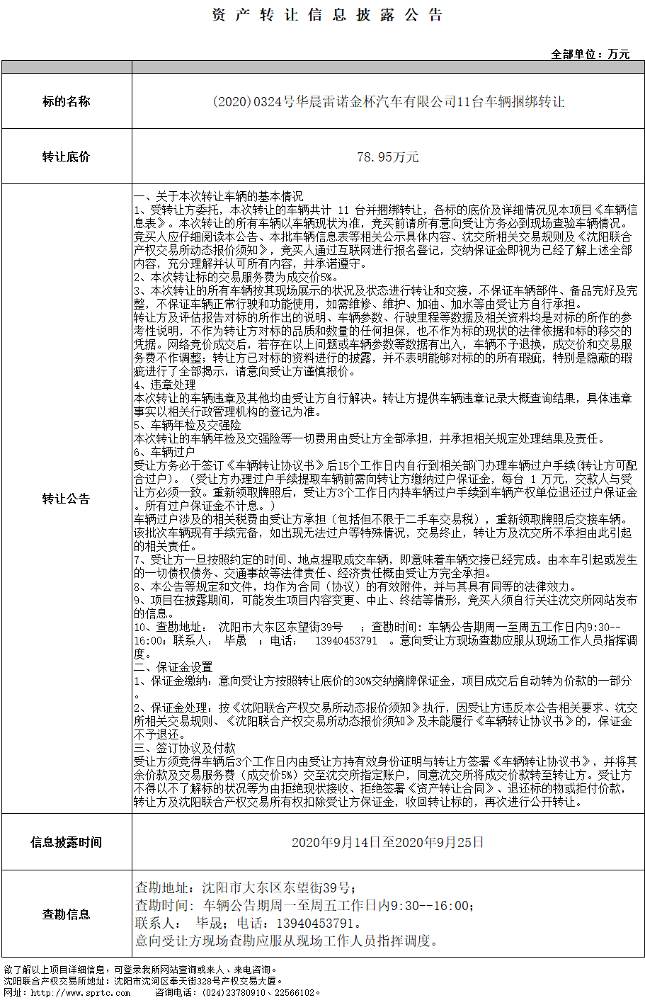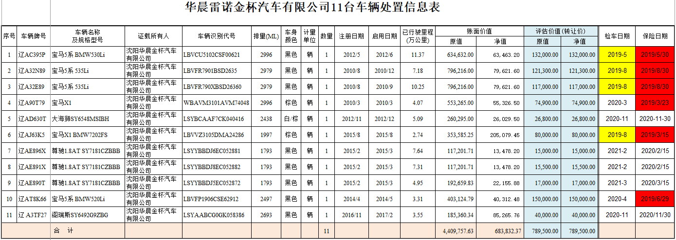 (2020)0324號華晨雷諾金杯汽車有限公司11臺車輛捆綁轉讓