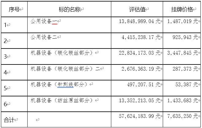 沈陽中恒新材料有限公司(碳化碳絲部分二) 第五次掛牌
