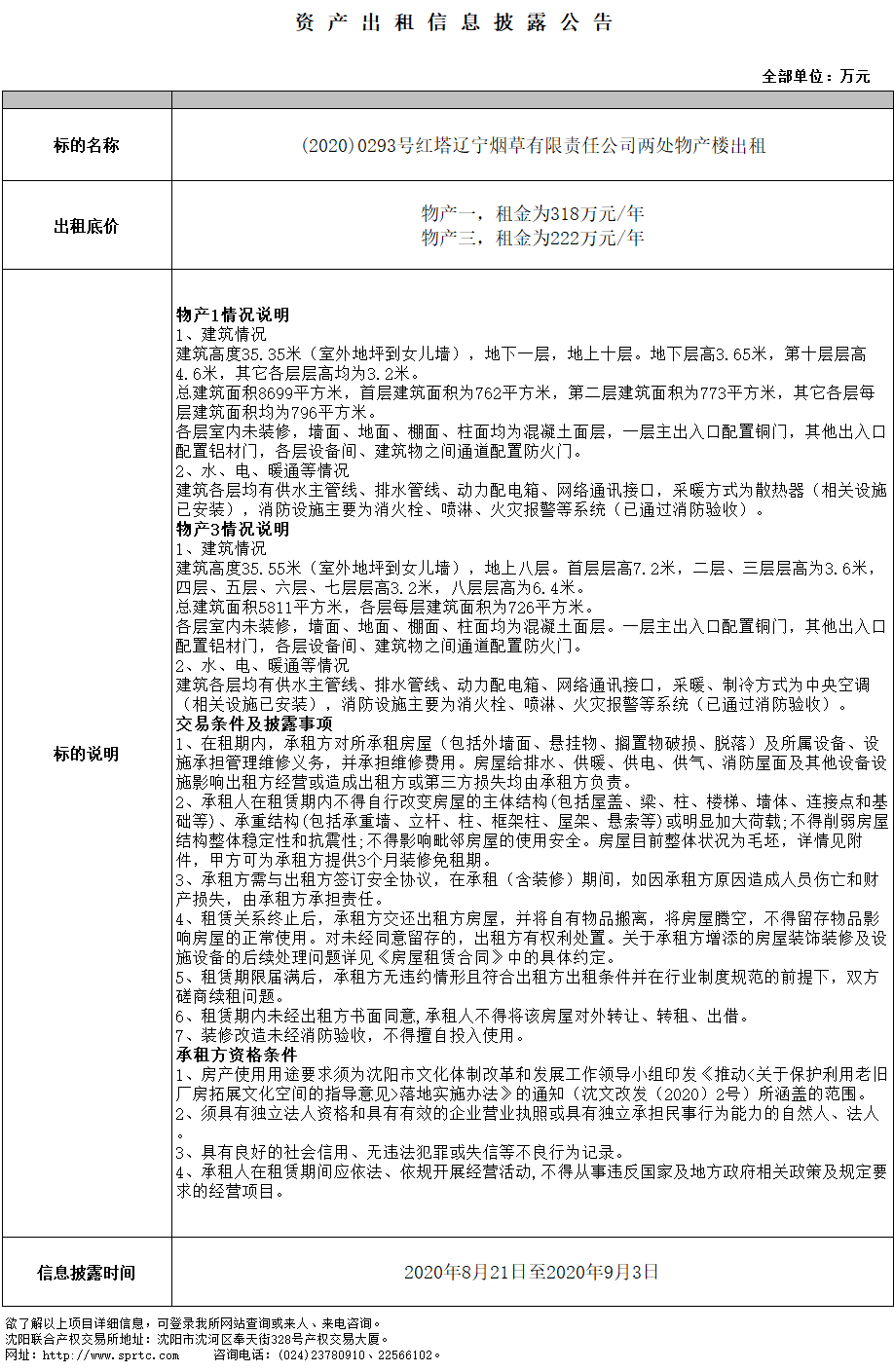 紅塔遼寧煙草公司物產樓3(和平區(qū)和平北大街26-2號)房產出租