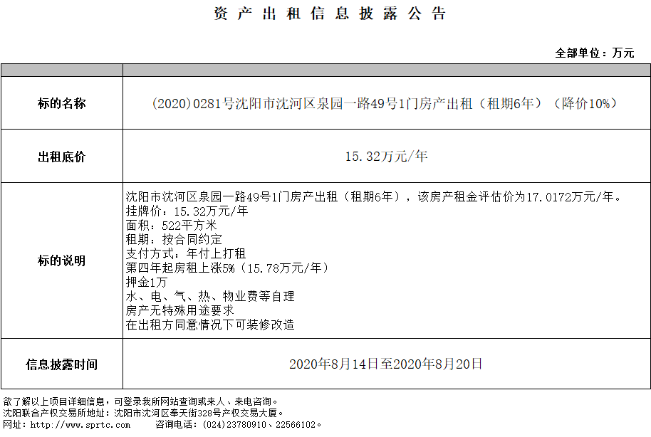 沈陽市沈河區(qū)泉園一路49號1門房產(chǎn)出租 (租期6年)