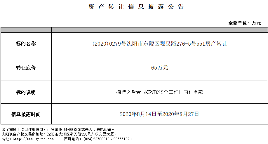 沈陽市東陵區(qū)觀泉路276-5號551房產(chǎn)轉(zhuǎn)讓