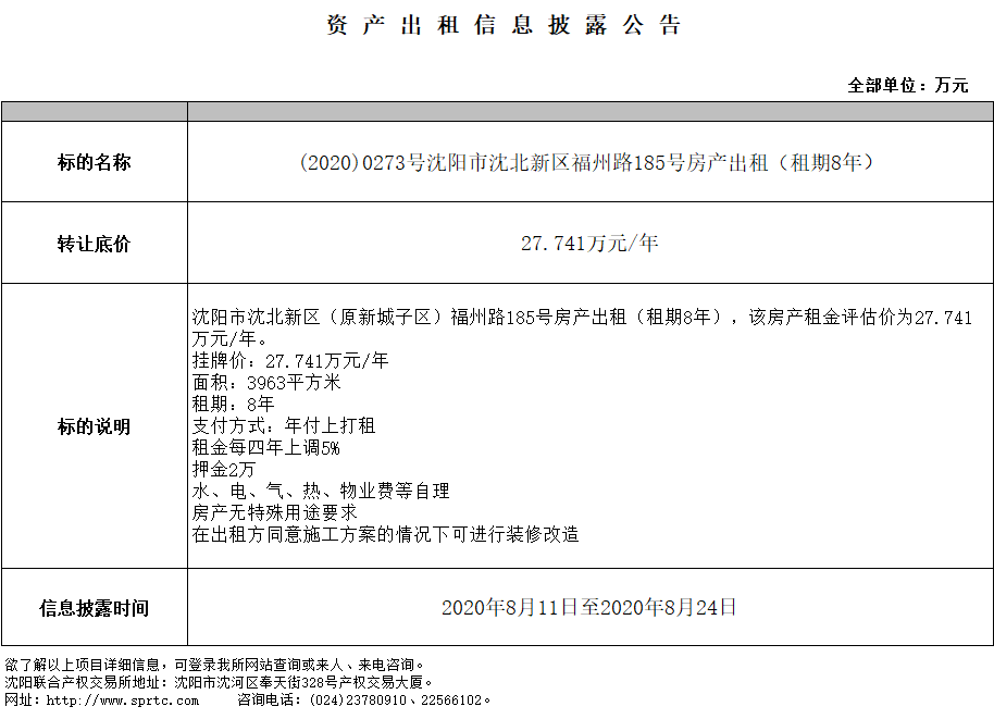 沈陽市沈北新區(qū)(原新城子區(qū))福州路185號房產(chǎn)出租(租期8年)