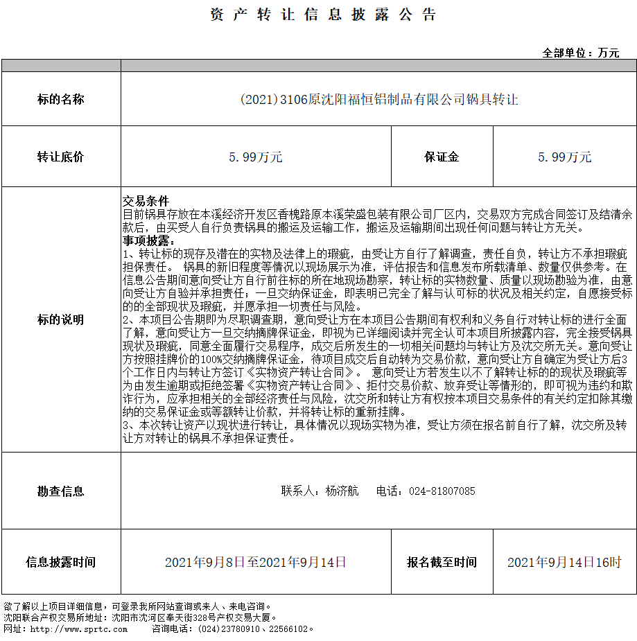 原沈陽(yáng)福恒鋁制品有限公司鍋具轉(zhuǎn)讓