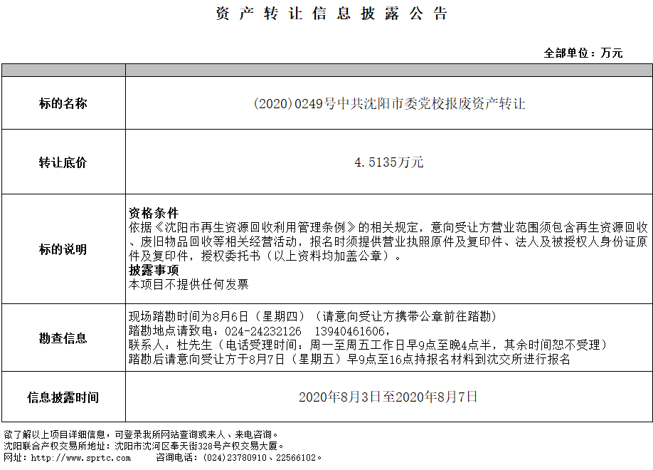 中共沈陽(yáng)市委黨校報(bào)廢資產(chǎn)轉(zhuǎn)讓