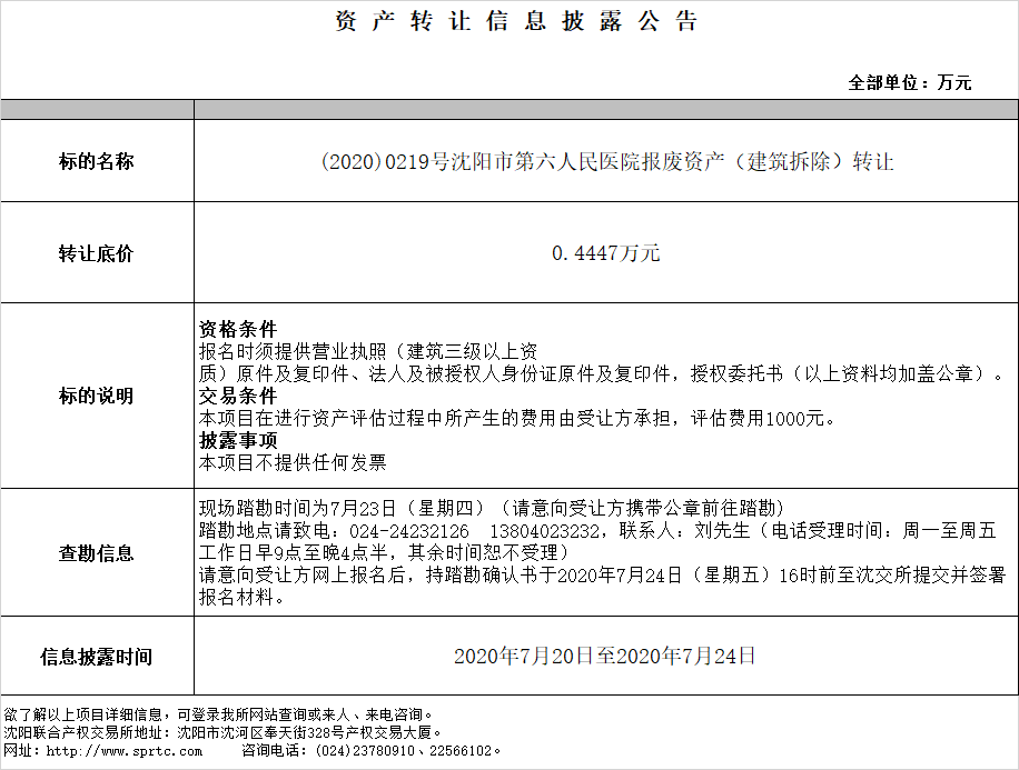 沈陽(yáng)市第六人民醫(yī)院報(bào)廢資產(chǎn)轉(zhuǎn)讓?zhuān)ńㄖ鸪?/span>