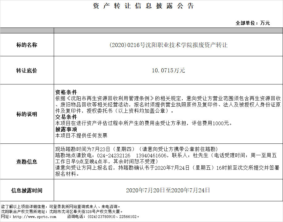 項(xiàng)目鏈接:沈陽職業(yè)技術(shù)學(xué)院報(bào)廢資產(chǎn)轉(zhuǎn)讓