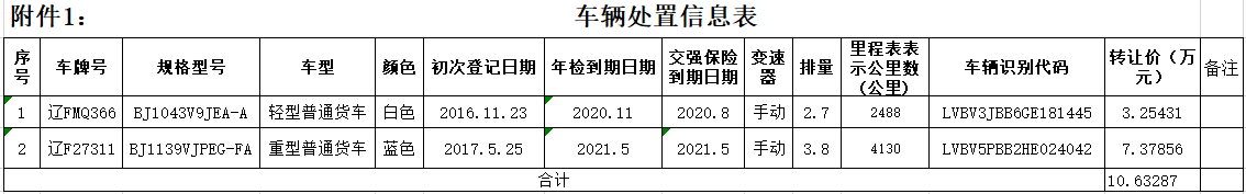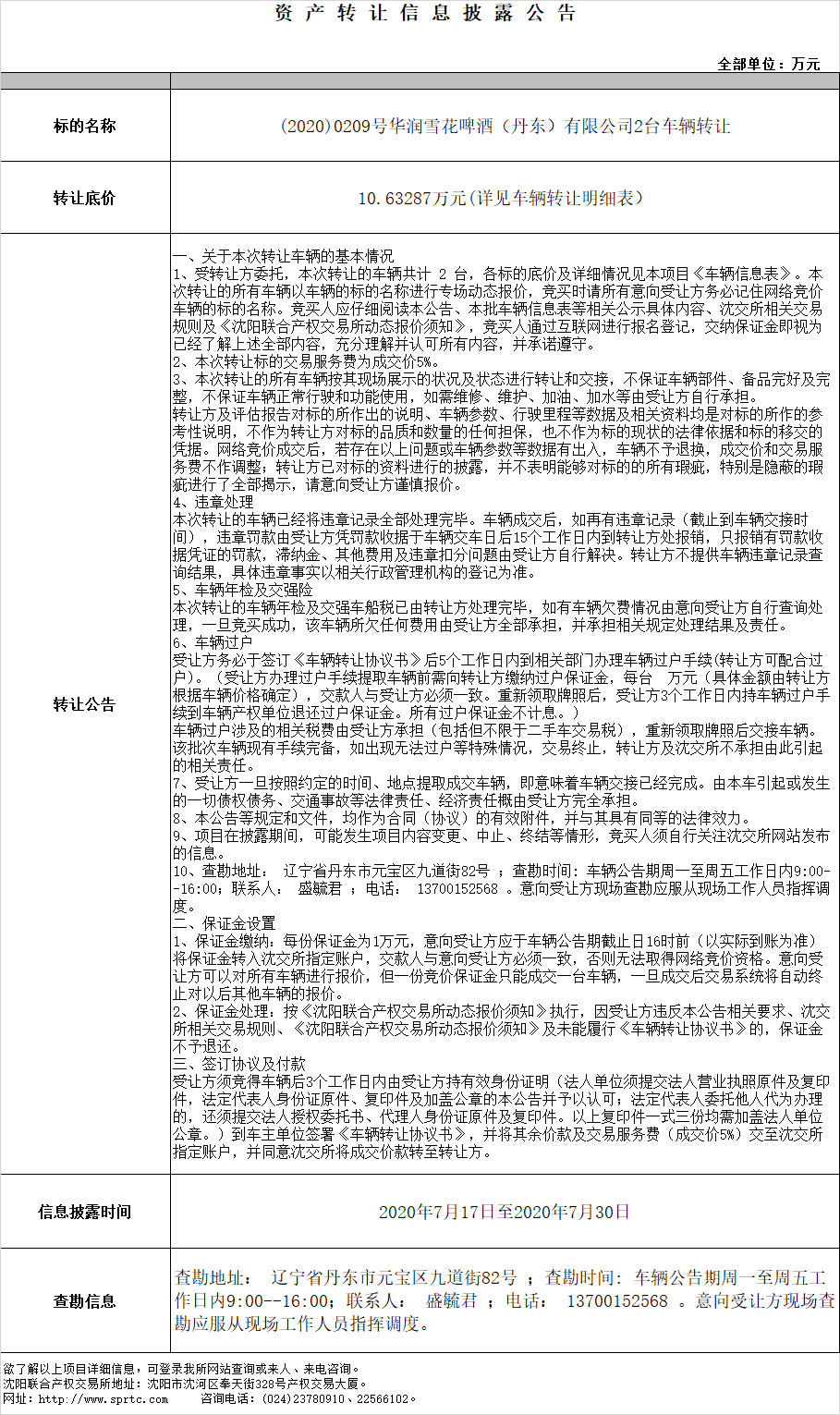 (2020)0209號(hào)華潤(rùn)雪花啤酒(丹東)有限公司2臺(tái)車輛轉(zhuǎn)讓