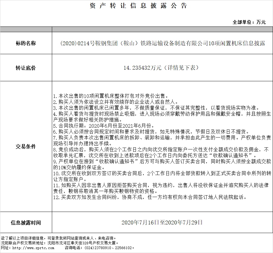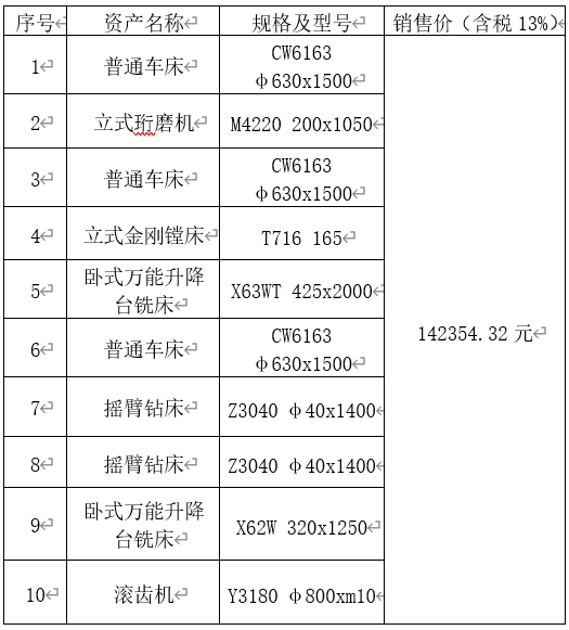 鞍鋼集團(鞍山)鐵路運輸設(shè)備制造有限公司10項閑置機床