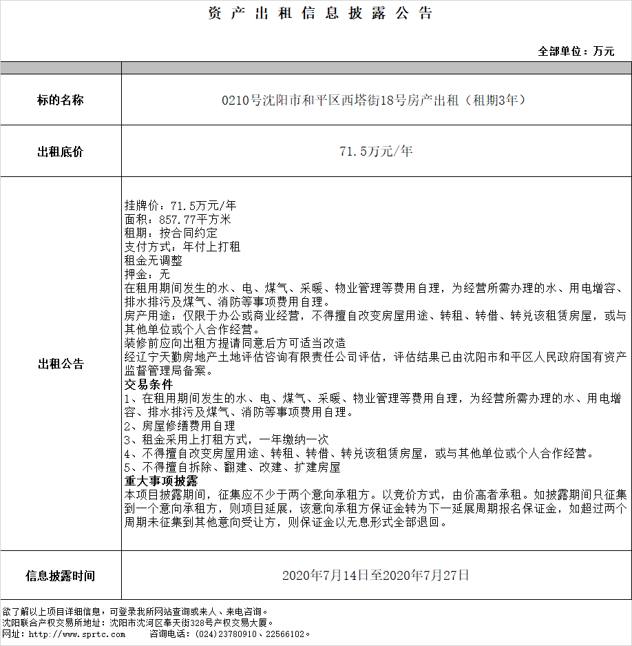 沈陽(yáng)市和平區(qū)西塔街18號(hào)房產(chǎn)出租(租期3年)