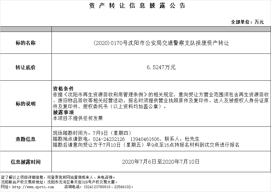 沈陽(yáng)市公安局交通警察支隊(duì)報(bào)廢資產(chǎn)轉(zhuǎn)讓。