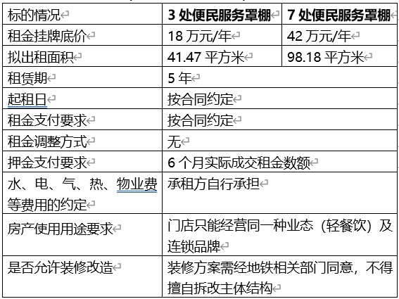 沈陽地鐵9號線3處便民服務罩棚出租(租期5年)