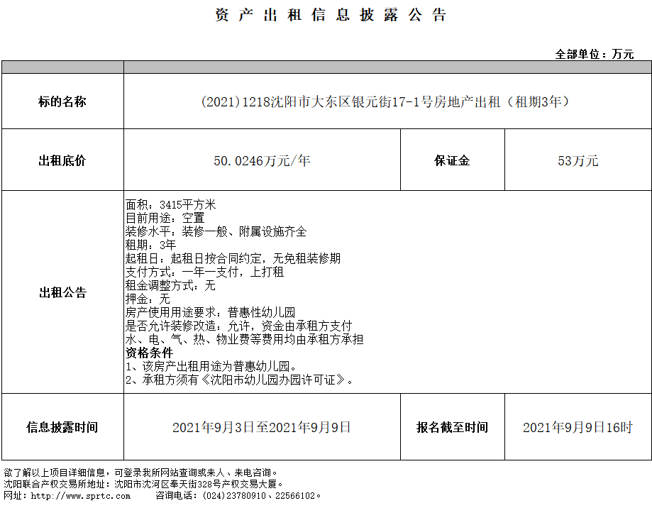 沈陽(yáng)市大東區(qū)銀元街17-1號(hào)房地產(chǎn)出租(租期3年)