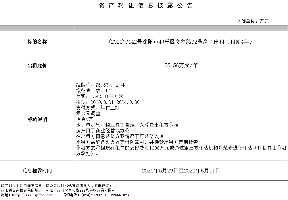 沈陽市和平區(qū)文萃路32號(hào)房產(chǎn)出租(租期4年)。