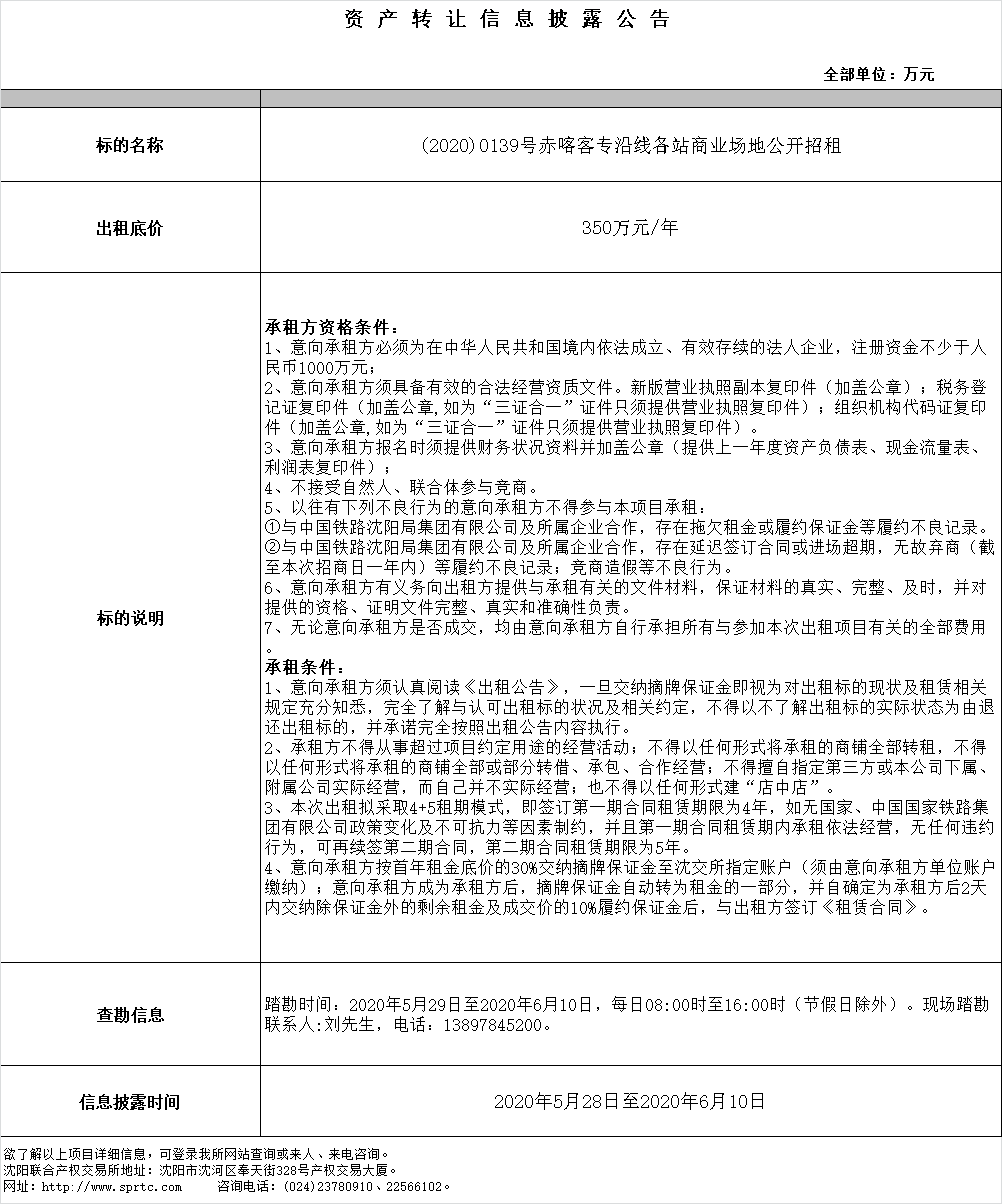 項(xiàng)目鏈接:赤喀客專沿線各站商業(yè)場(chǎng)地公開(kāi)出租。