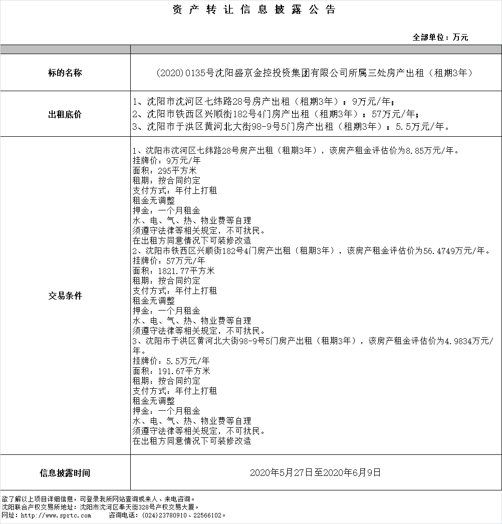 沈陽市沈河區(qū)七緯路28號房產(chǎn)出租(租期3年);
