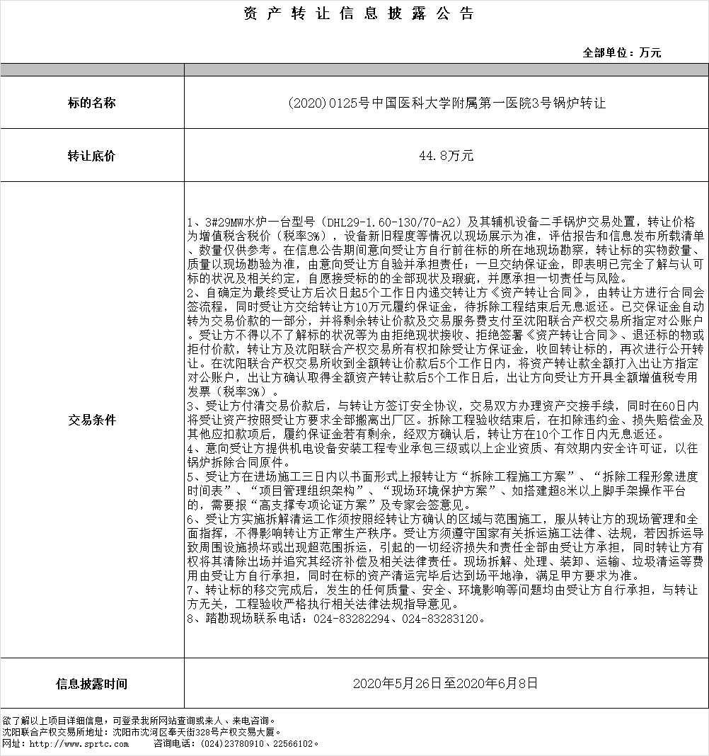 中國(guó)醫(yī)科大學(xué)附屬第一醫(yī)院的3號(hào)29MW燃煤熱水二手鍋爐轉(zhuǎn)讓。