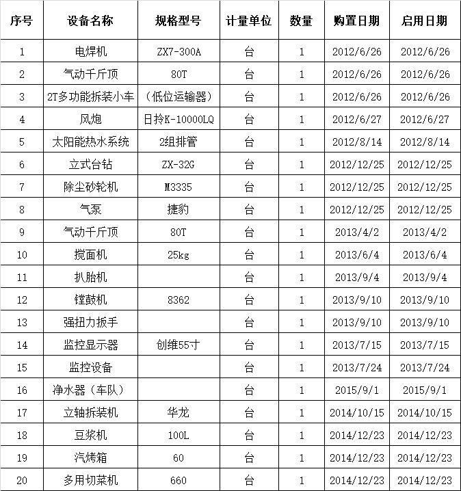 注1、設(shè)備停放地點(diǎn): 沈陽(yáng)市渾南區(qū);