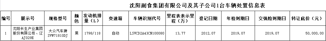 (2020)0113號(hào)沈陽副食集團(tuán)有限公司1臺(tái)車輛轉(zhuǎn)讓