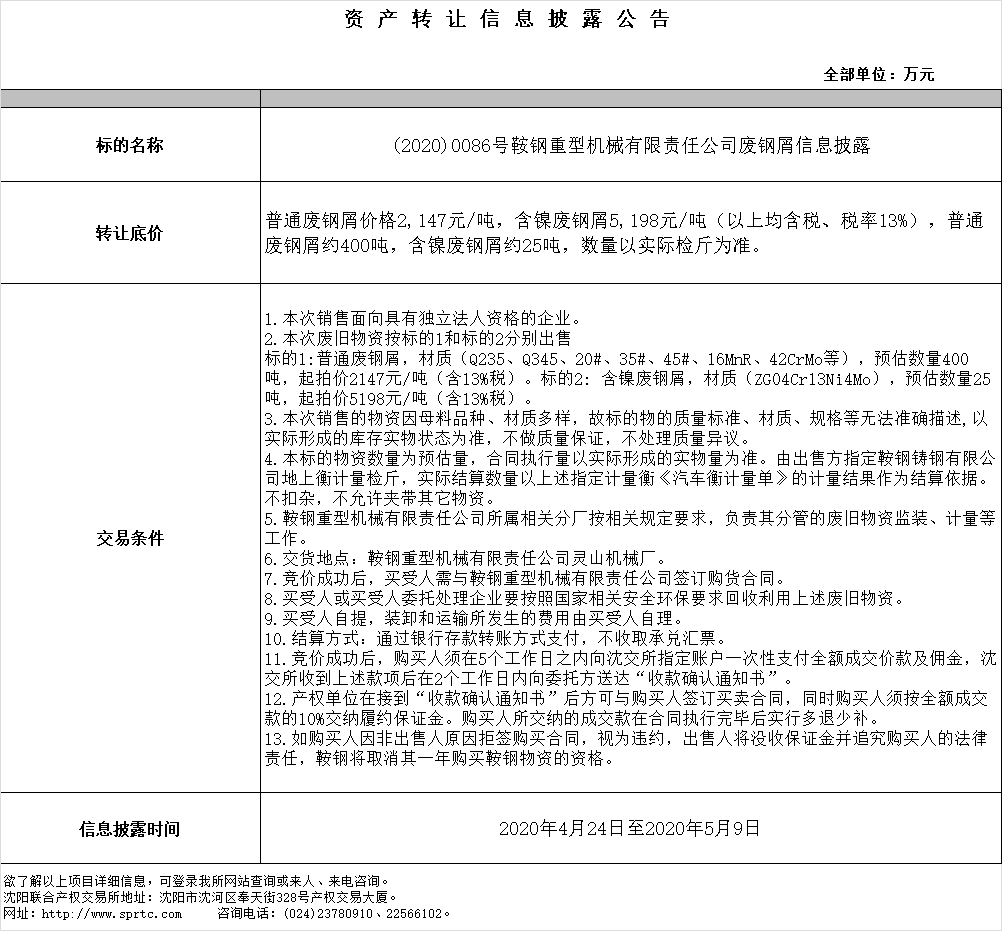 鞍鋼重型機械有限責(zé)任公司普通廢鋼屑;