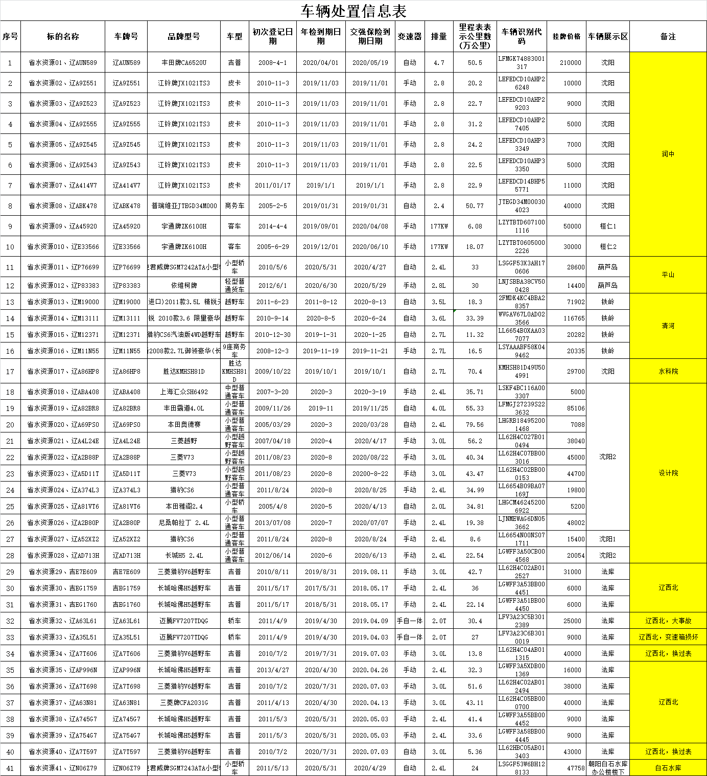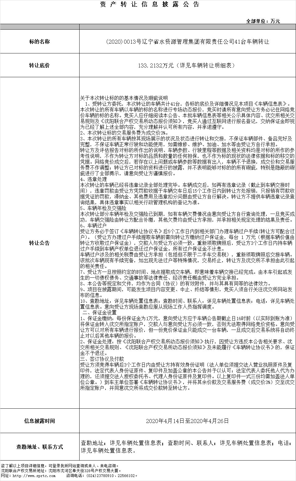 (2020)0013號遼寧省水資源管理集團有限責任公司41臺車輛轉(zhuǎn)讓