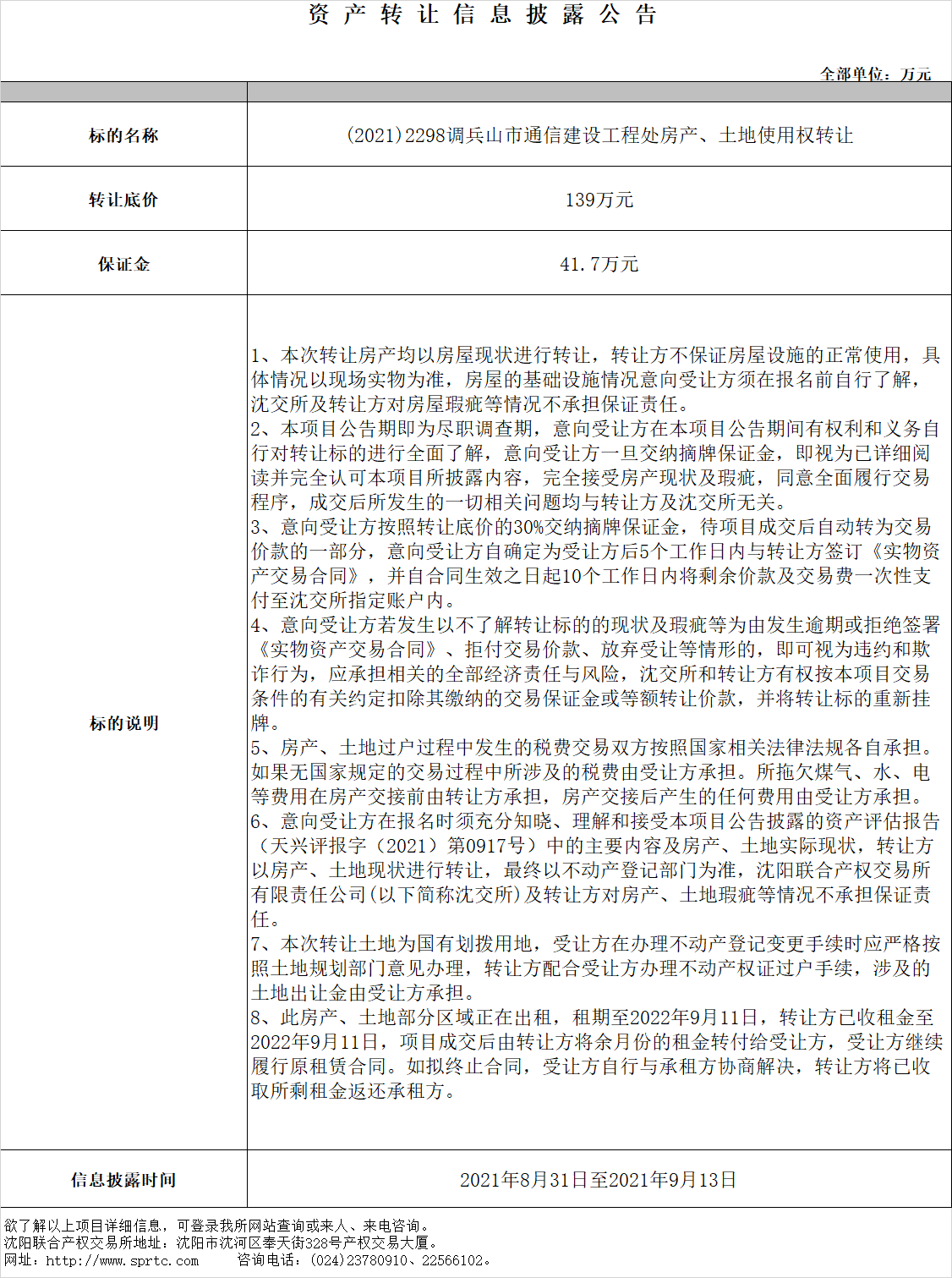 調(diào)兵山市通信建設(shè)工程處房產(chǎn)、土地使用權(quán)轉(zhuǎn)讓。