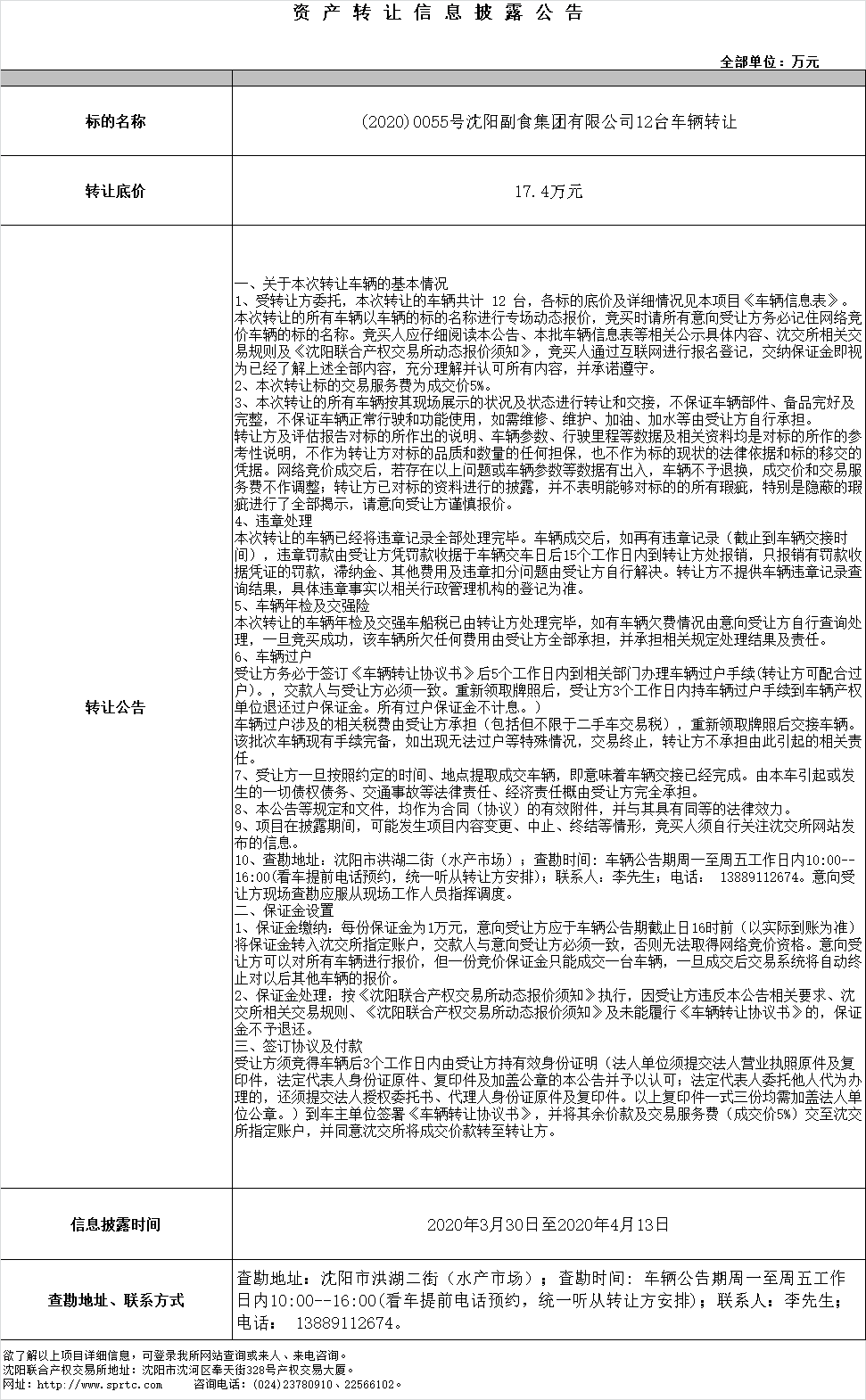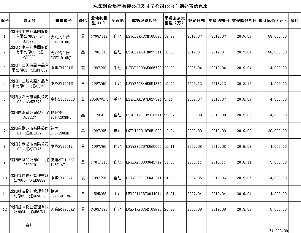 (2020)0055號沈陽副食集團(tuán)有限公司12臺車輛轉(zhuǎn)讓