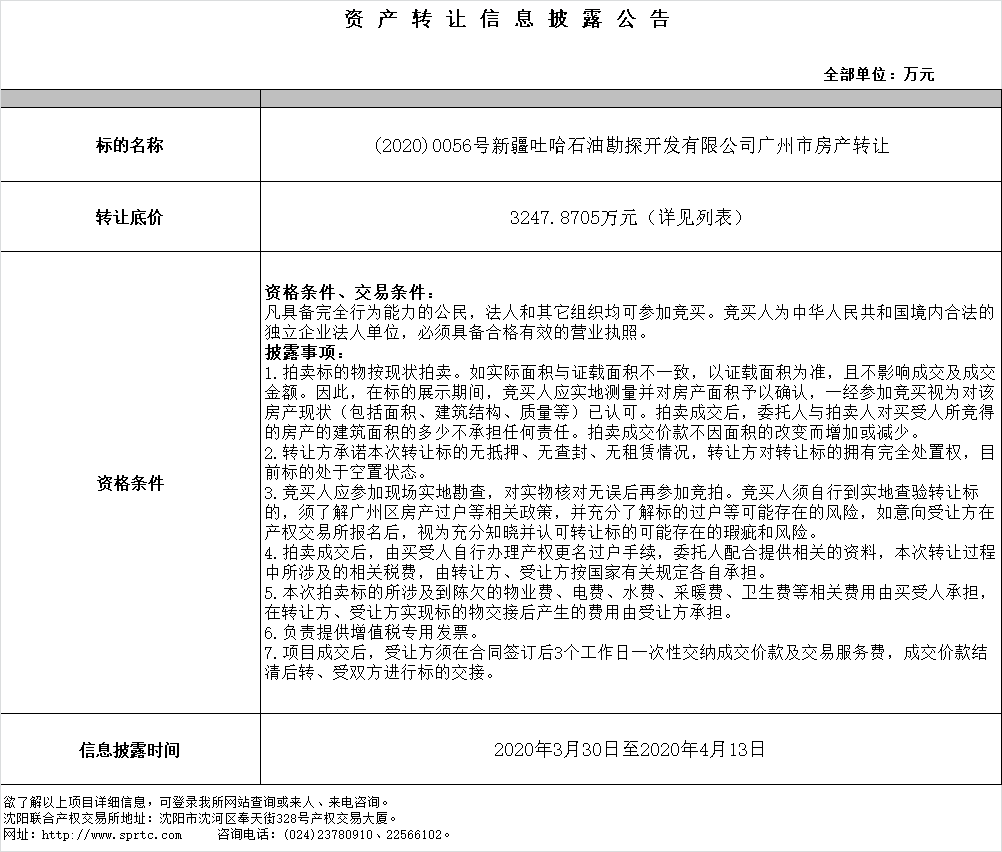 新疆吐哈石油勘探開發(fā)有限公司廣州市房產(chǎn)轉(zhuǎn)讓。