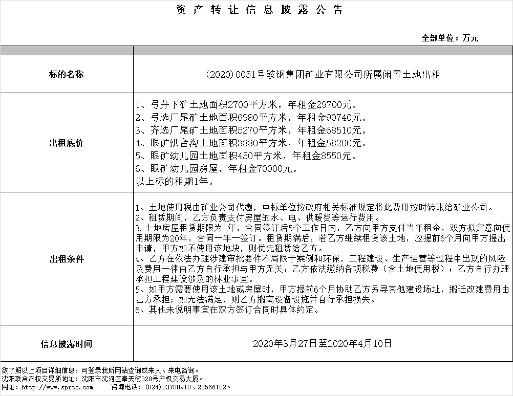 鞍鋼集團(tuán)礦業(yè)公司弓井下礦閑置土地出租;