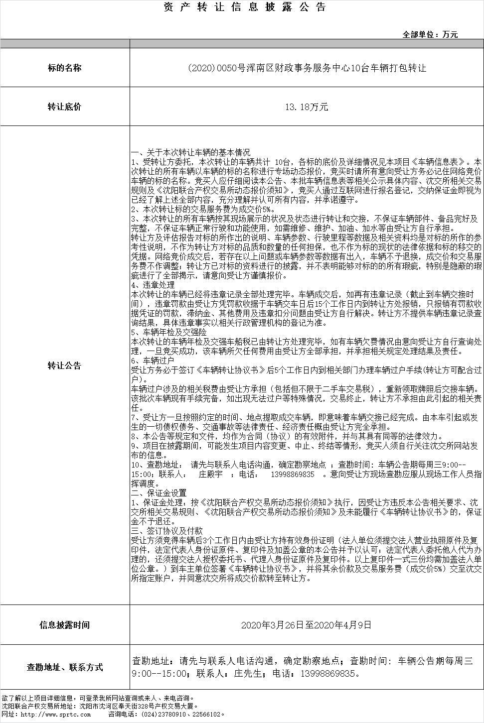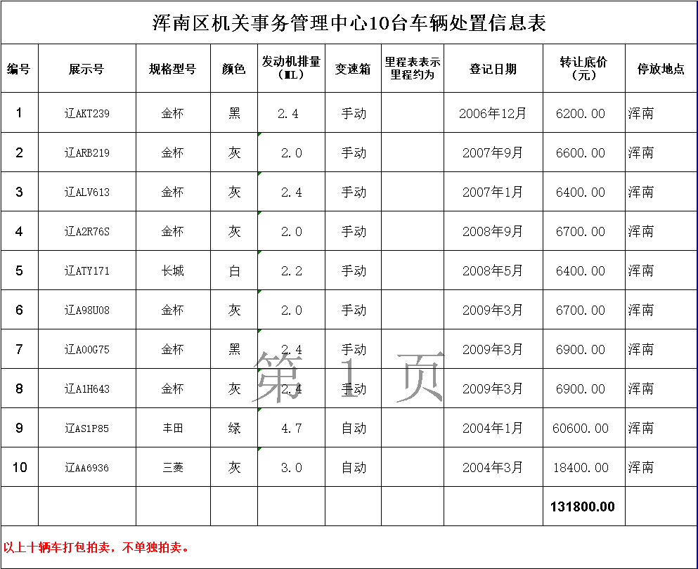 渾南區(qū)財政事務服務中心10臺車輛打包轉(zhuǎn)讓。