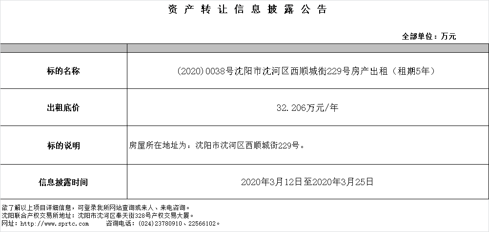 沈陽市沈河區(qū)西順城街229號房產(chǎn)出租(租期5年)。