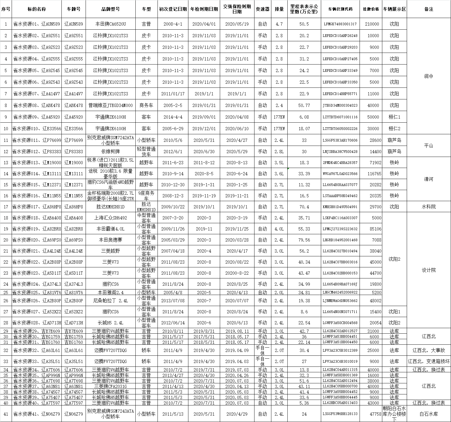 (2020)0013號遼寧省水資源管理集團有限責任公司41臺車輛轉(zhuǎn)讓