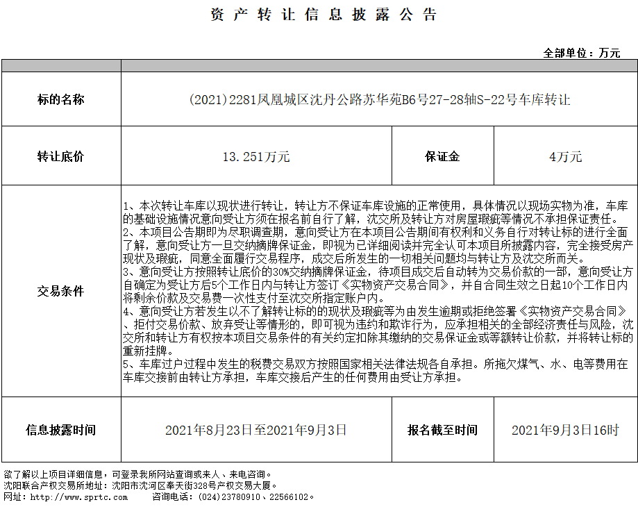 鳳凰城區(qū)沈丹公路蘇華苑B6號(hào)27-28軸S-22號(hào)車庫轉(zhuǎn)讓