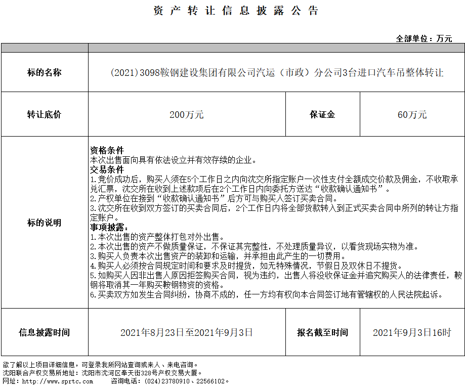 鞍鋼建設(shè)集團有限公司汽運(市政)分公司3臺進口汽車吊轉(zhuǎn)讓