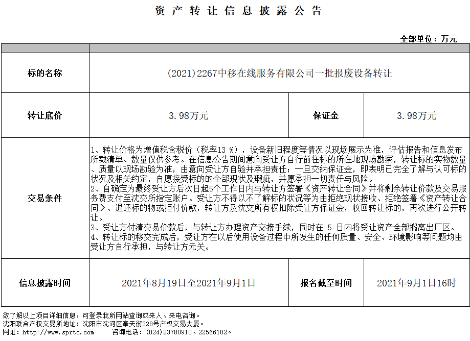 (2021)2267中移在線服務有限公司一批報廢設備轉讓
