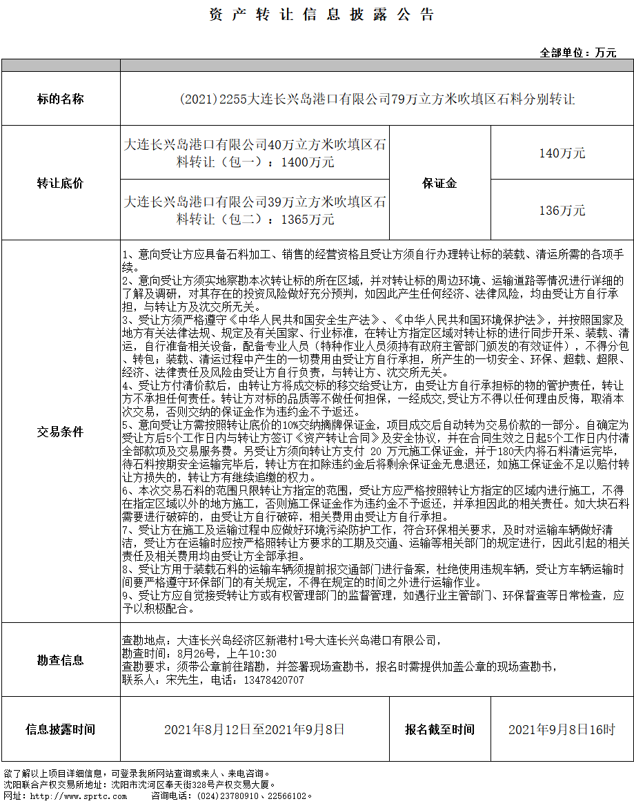 大連長興島港口有限公司39萬立方米吹填區(qū)石料轉(zhuǎn)讓(包二)