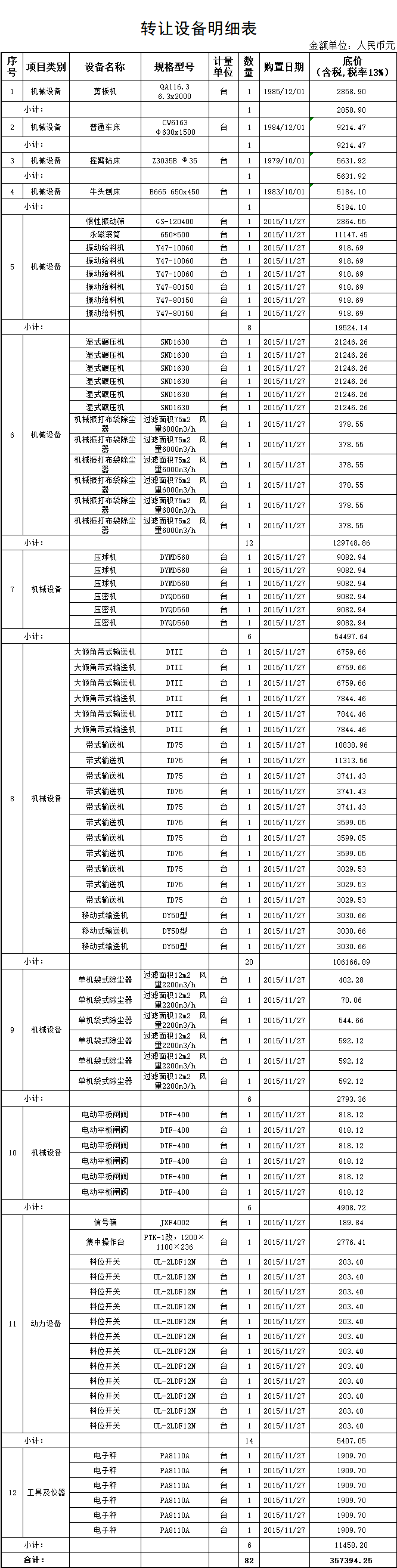 鞍鋼綠色資源科技有限公司機械設(shè)備12電子秤等轉(zhuǎn)讓