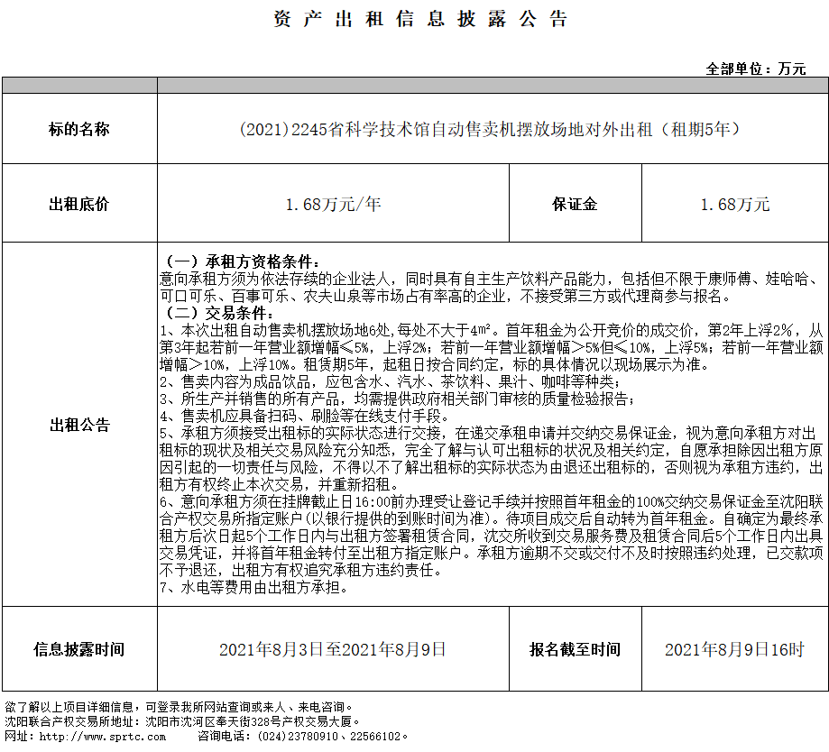 省科學(xué)技術(shù)館自動(dòng)售賣機(jī)擺放場(chǎng)地對(duì)外出租(租期5年)