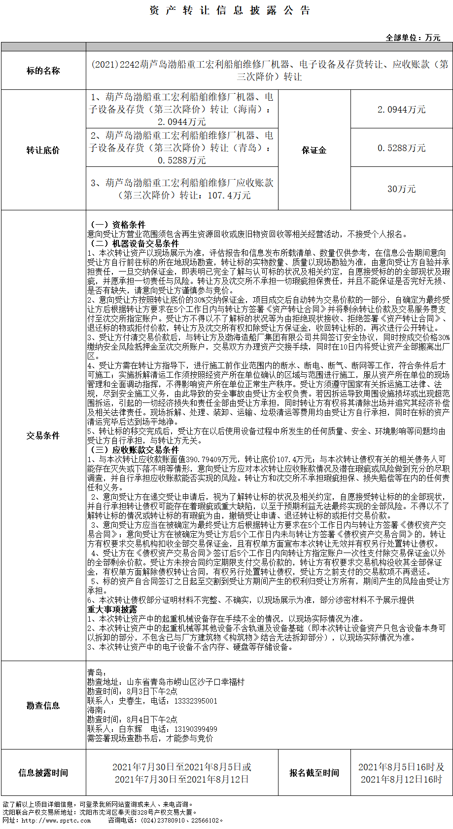 葫蘆島渤船重工宏利船舶維修廠應(yīng)收賬款(第三次降價(jià))轉(zhuǎn)讓