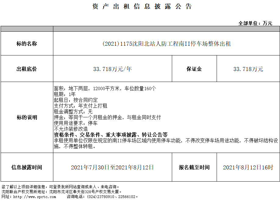 沈陽北站南廣場北站路南側南Ⅱ停車場整體出租(租期一年)
