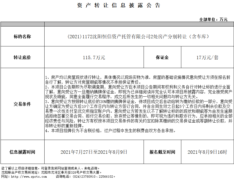 沈北新區(qū)沈北路186-19號(hào)(4-3-2) 房產(chǎn)及15門車庫(kù)捆綁轉(zhuǎn)讓