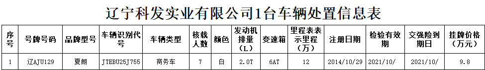 遼寧科發(fā)實(shí)業(yè)有限公司1臺(tái)車輛轉(zhuǎn)讓