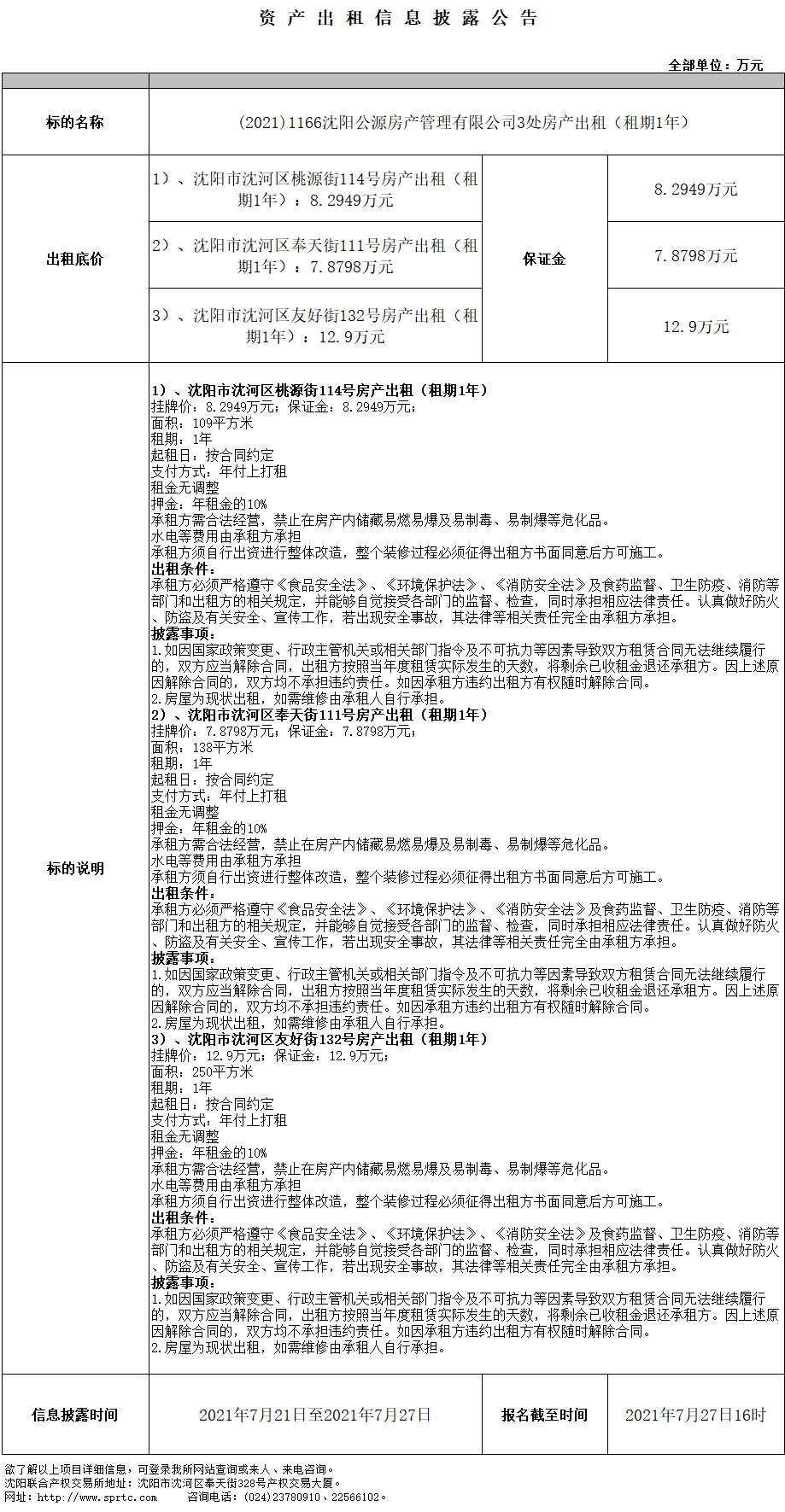 沈陽市沈河區(qū)奉天街111號房產出租(租期1年)