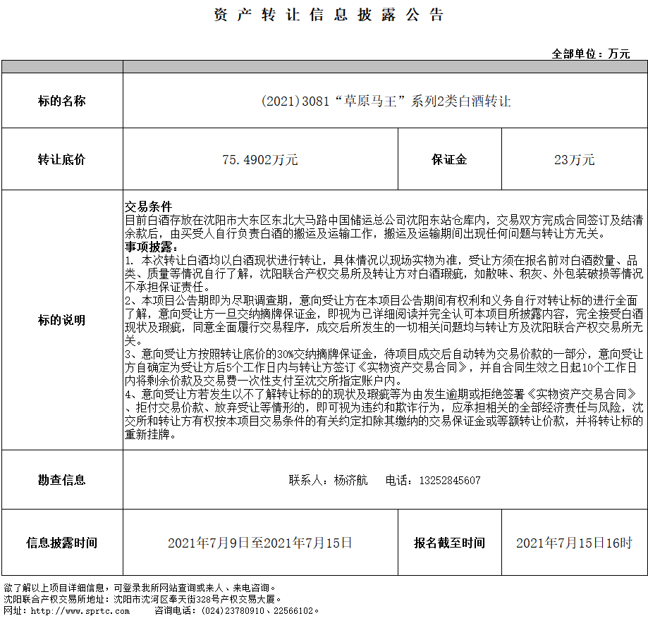 (2021)3081“草原馬王”系列2類白酒轉讓