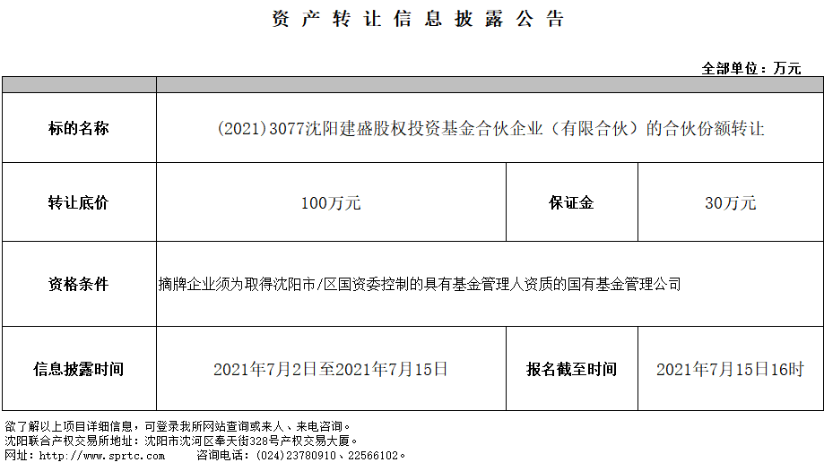 (2021)3077沈陽建盛股權(quán)投資基金合伙企業(yè)(有限合伙)的合伙份額轉(zhuǎn)讓