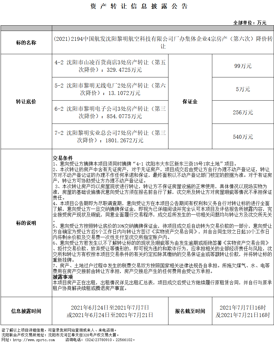 6-2 沈陽市黎明電子公司3處房產(chǎn)轉(zhuǎn)讓(第三次降價)